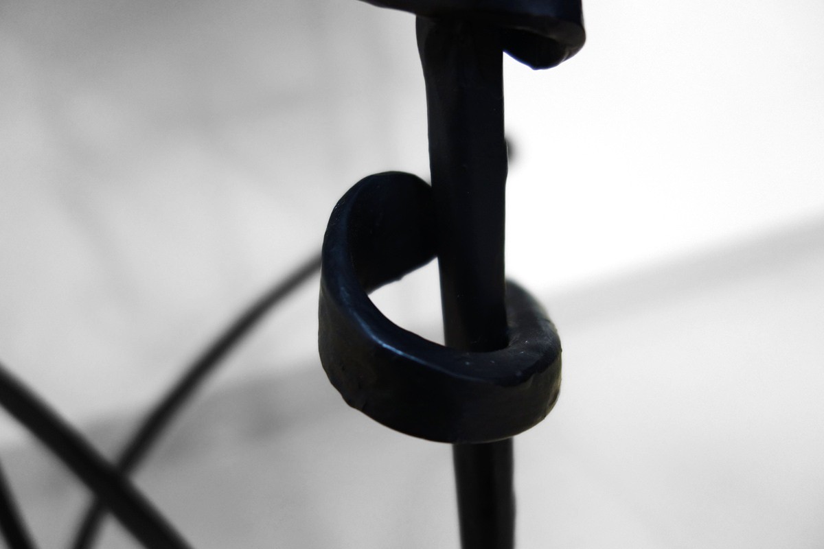 鐵の脚部は山麓アトリエの作品、天板の木目や色合いとの相性も抜群で、お互いを引き立て合い、唯一無二の佇まいを生み出しています。使い始めたその日から少しずつ表情を変え、時を重ねるごとに深みを増し、さらなる魅力を放っていくことでしょう。
