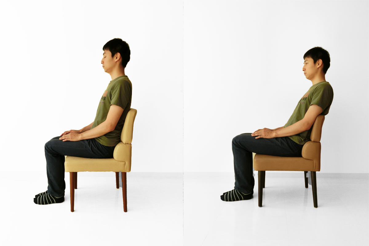 靴が大きすぎても小さすぎても履きにくいのと同じように、椅子も自分の身体に合っていないと疲れやすいです。左右の写真を見比べていただければ分かると思いますが、座る人の体型に合った椅子は、自然な姿勢で座ることができ、体への負担が少なくて快適です。